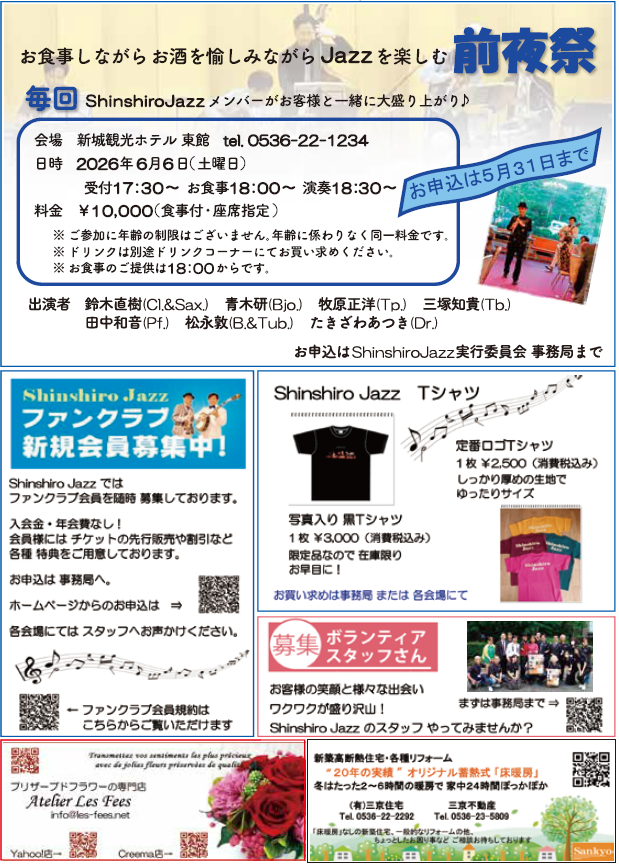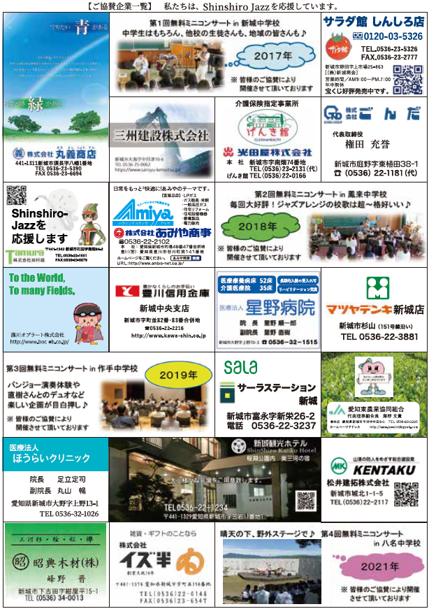 Shinshiro Jazz実行委員会事務局 〒441-1331 愛知県新城市庭野字東萩野20