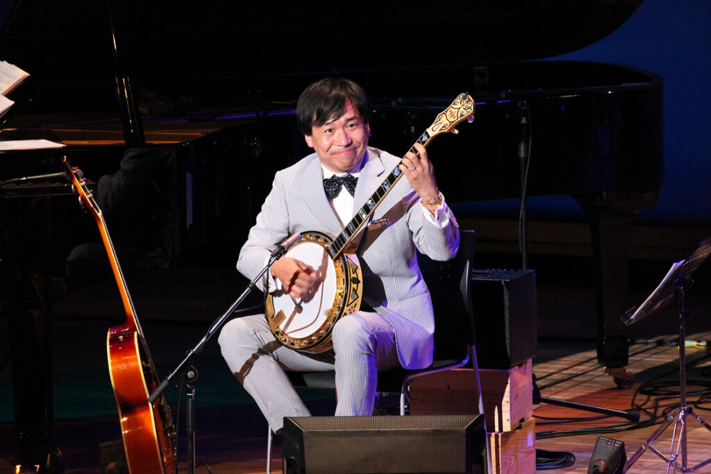 1978年千葉県流山市出身。7歳頃、二村定ーなどの唄う「ジャズ小唄」(君恋し、私の青空、アラビヤの唄)をはじめとする、蓄音機やそこから流れる戦前音楽に親しみ、それらの曲に使われていたバンジョーのサウンドに特に強い魅力を感じる。13歳で初めてバンジョーを手にしてから、ディキシーランドジャズで使われる4本弦のバンジョーをほぼ独学でマスターする。千葉県柏市の東葛飾高校在学中よリ演奏活動をスタート。ライブハウス、ホール、イベント、テーマパーク、ホテル、レストラン、客船、内外ジャズフェスティバルやバンジョー・フェスティバル、ラジオ、TV等で演奏。2010年、アメリカ・サンノゼのバンジョー大会にヘッドライナーとして、2011年、FIGA主催の全米バンジョーコンヴェンションに、2013年はハンガリーで開催されたジャズフェスティバルにソリストとして招聘される。バ‘ンジョー主体の演奏の他、数多くのディキシーランド/スイングジャズの演奏家をはじめ、ブルーーグラス、ジャグバンド奏者、管弦楽団、吹奏楽団との共演、ソリスト、歌手等のサポートなど多種のステージを通し、楽しげなステージングと華麗なテクニックで観客を魅了している。米JAZZBANJO ジャズ批評社「ジャズ批評」JAZLIFE誌、等で特集記事が組みまれる。日本では数少ない、ソリストとして演奏することのできるバンジョー奏者。2024年アメリカン・バンジョー・ミュージアムの殿堂入りを果たす!